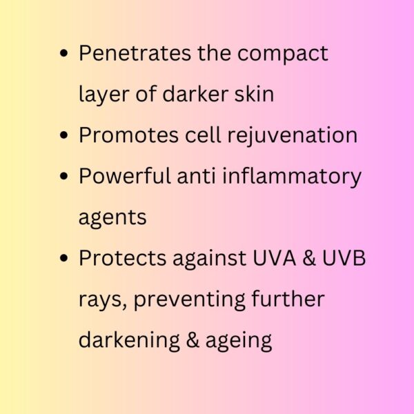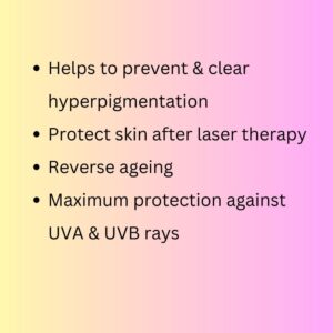 - Sun protection (SPF 25), protects against UVA & UVB rays, preventing further darkening & ageing